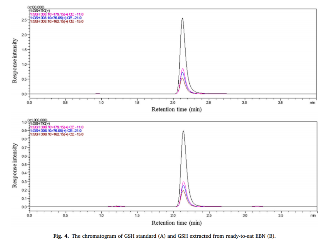 燕窩作為歷史悠久的滋補(bǔ)佳品,深受國人喜愛和追捧。谷胱甘肽是一種重要的抗氧化劑,天然存在于動(dòng)植物體內(nèi),具有抗氧化、增強(qiáng)免疫、保護(hù)肝臟和解毒等多種生物學(xué)功能(Bonet-Aleta et al., 2022; Zhou et al., 2022)。谷胱甘肽的含量關(guān)系到燕窩的營養(yǎng)價(jià)值,因此準(zhǔn)確和科學(xué)的測定燕窩中是否存在谷胱甘肽,以及測定谷胱甘肽的含量顯得尤為重要。