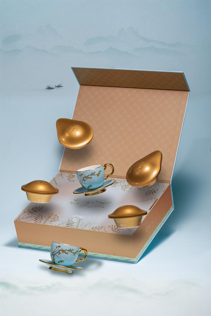 燕之屋x永豐源花燕和鳴·國(guó)韻禮,內(nèi)含碗燕·尊享款(180g)4碗、永豐源夫人瓷·西湖藍(lán)150ml咖啡杯碟4頭;燕之屋x永豐源花燕和鳴·家韻禮,內(nèi)含碗燕·榮耀款(108g)4碗、永豐源夫人瓷·西湖藍(lán)150ml咖啡杯碟4頭,瓷器與燕窩組合,別具一格。